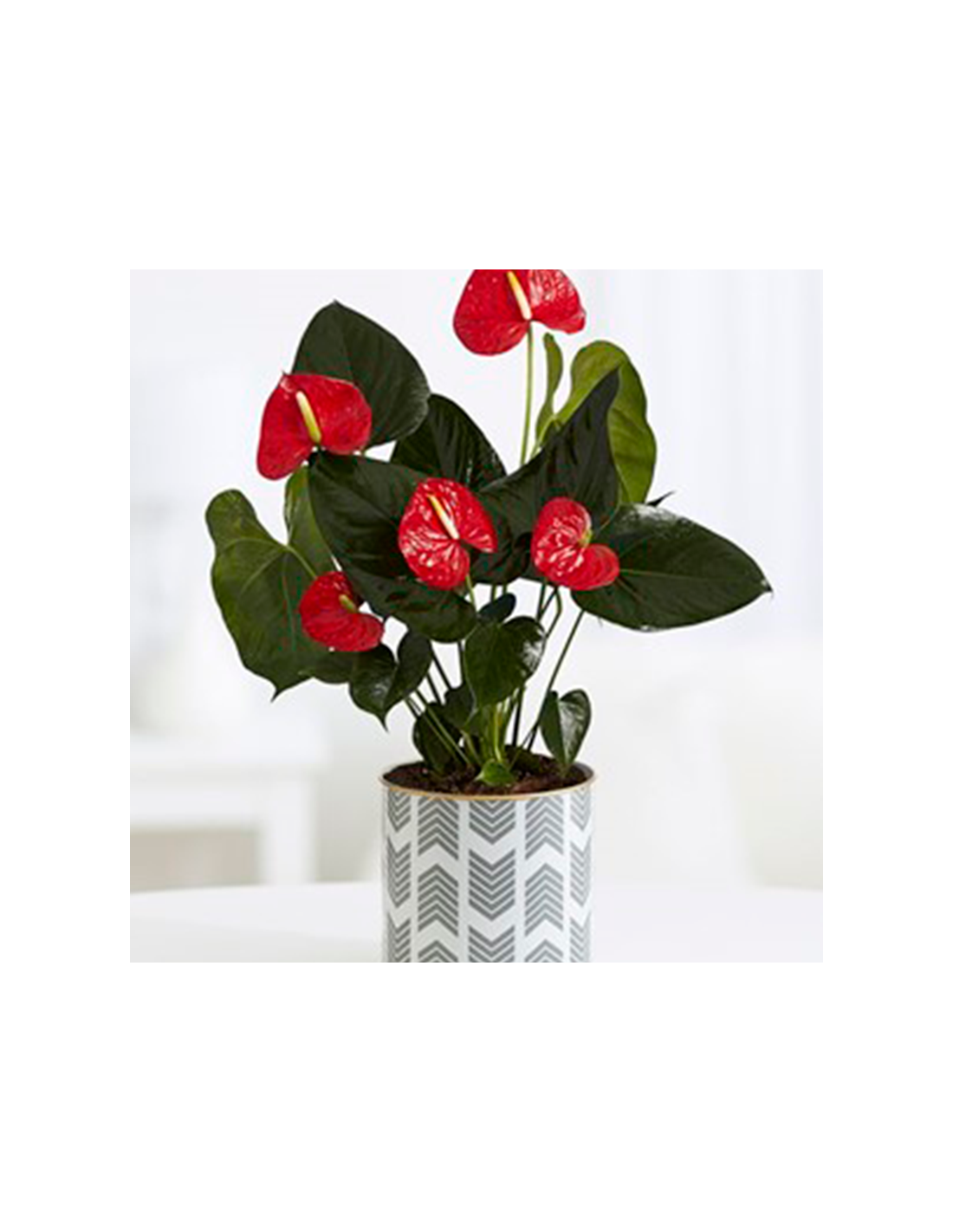 Elegantes flores rojas en forma de corazón, surgen entre las hojas verdes y brillantes de una planta que permanece a tu lado por largo tiempo.